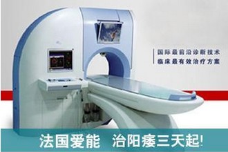 眼前國際上,“法國愛能”是診斷男性性功能障礙最前沿的物理療法。自國內引進法國愛能技術以來,發現其對男性生理功能的恢復治療作用是十分神奇的。由于大部分陽痿早泄患者都伴有不同程度的前列腺炎癥及其它生殖系統炎癥,而傳統療法只單純針對性器官的康復,所以治療效果大打折扣。而法國愛能男性康復治療技術同時具有對男性前列腺炎癥及其它生殖系統炎癥的輔助治療功效,在恢復性功能的同時可以活血化瘀、消除炎癥,達到事半功倍的效果。一般中輕度ED患者,只要經過一至五次治療,都可在不同程度上恢復和改善性生理功能,顯著提高性生活質量。經過上千例陽痿患者的臨床治療效果觀察,治療效果大大提高了,治療周期大大縮短了,治療費用大大降低了,所以該技術已成為近兩年治療陽痿的首選。