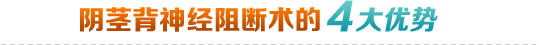 陰莖背神經阻斷術是針對于僅由龜頭神經過于敏感引起的頑固性早泄而采取的治療方法。陰莖背神經阻斷術是在局麻下做陰莖背部冠狀溝處橫切口,在Buck筋膜與白膜間分離顯露陰莖背神經的分枝,發現其神經分枝多達7枝,保留陰莖背神經主干及3枝分枝,如果不想用手術,也可以用漸進式延時訓練法。其余四枝神經分枝游離出2-3CM,予以切除,縫合切口。
