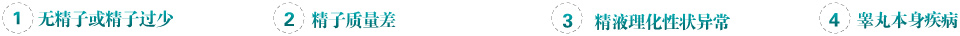 睪丸生精功能異常 隱睪、小睪丸、無睪、病毒性睪丸炎、精索靜脈曲張,毒素、磁場、高熱和外傷等理化因素皆可引起睪丸生精障礙。